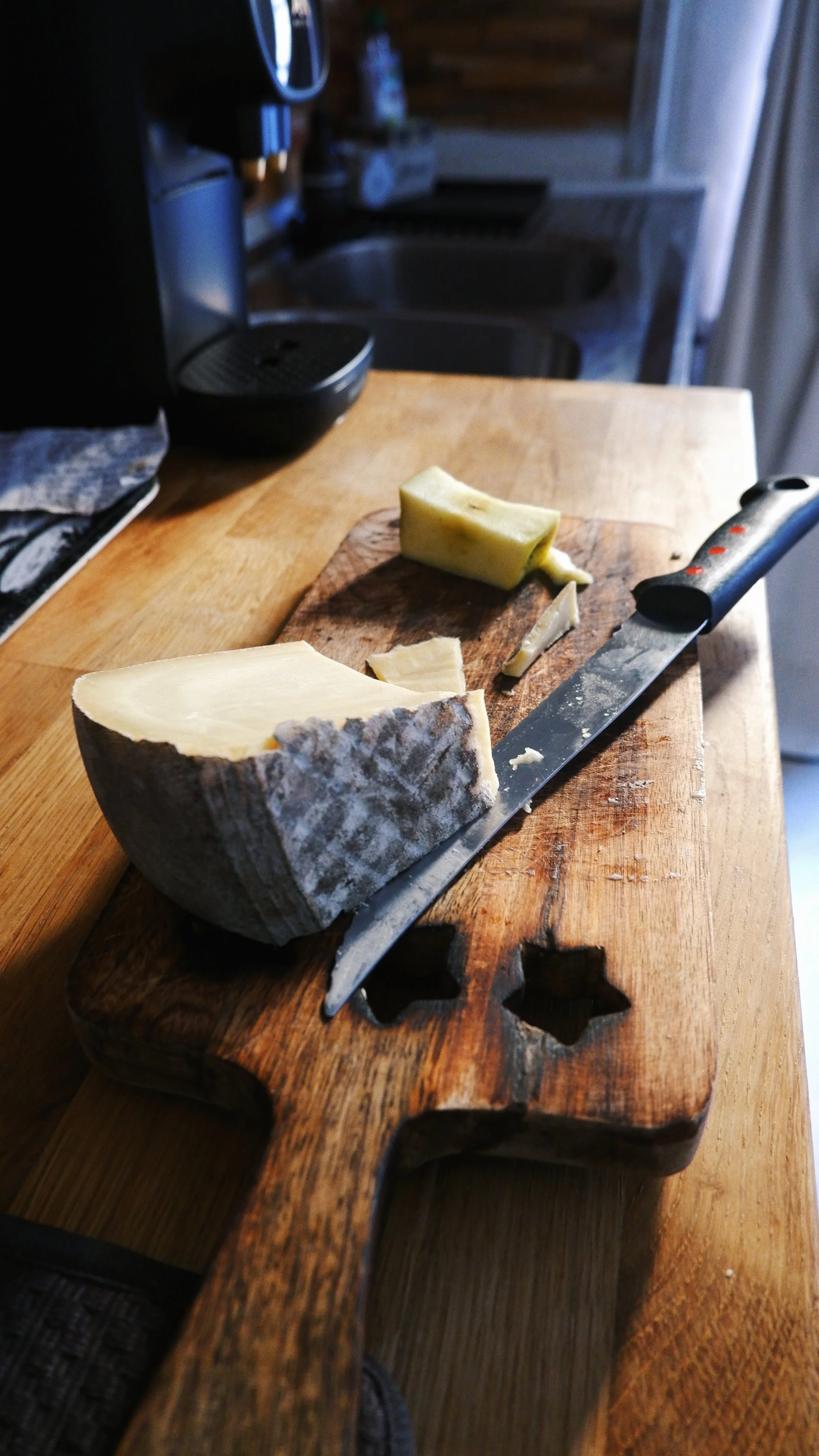 Made black tea and a huge plate of caramelised apple and cheese from the Pyranees.