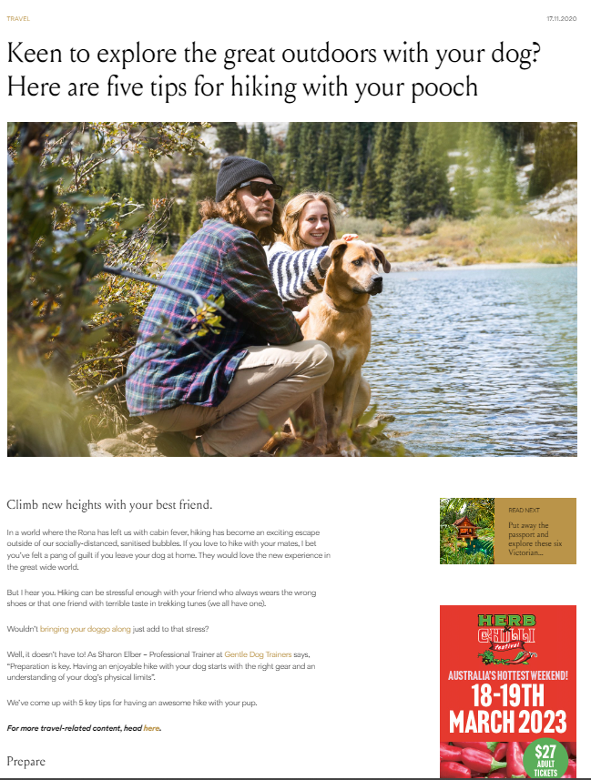 In 2020, became one of the key blog writers for the Australian dog publication, Gentle Dog Trainers. During our time together, my role expanded to include copy editing other’s blog posts, as well as producing weekly videos for the YouTube channel.